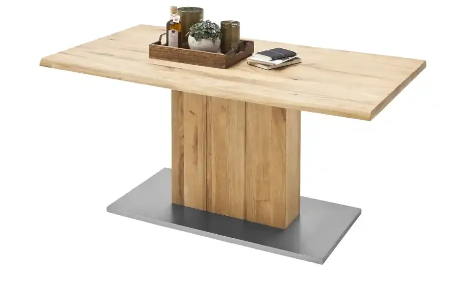 Tischplatte und Säule: Balkeneiche massiv geölt