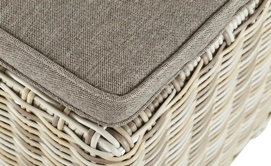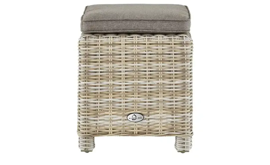 Bregenz ist ein Hocker von der Marke a casa mia. Er passt optisch zur gleichnamigen Outdoor-Serie und ergänzt diese perfekt. Der Hocker dient zum Sitzen oder zum Hochlegen der Beine. Für mehr Komfort ist ein Sitzkissen im Lieferumfang enthalten. Der Hocker besteht aus cremefarbenen Polyrattan.