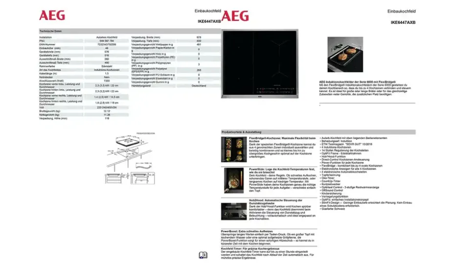 AEG Induktions-Kochstelle IKE6447AXB | Möbel Höffner