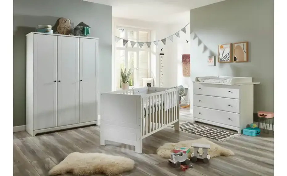 »Thilo« – eine moderne Interpretation des Landhausstils. Rustikal und doch elegant, dazu stabil und trotzdem filigran. Die Babyzimmerserie Thilo verkörpert all diese Werte und macht aus jedem Kinderzimmer einen außergewöhnlichen Ort der Ruhe und Harmonie. Die hochwertigen Fronten des Zimmers sind mit Kassettenfräsungen versehen. Zusammen mit den verbauten Soft-Close- und Türdämpfungssystemen unterstreichen sie den hohen Qualitätsanspruch dieser Zimmerserie.