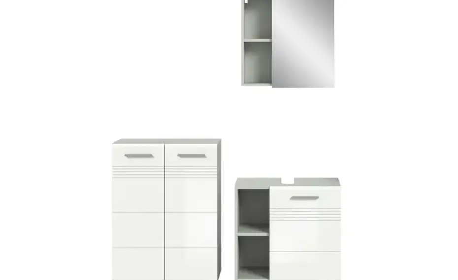 1x Midischrank, 1x Waschbeckenunterschrank, 1x Spiegelschrank