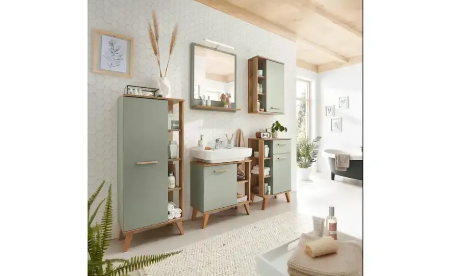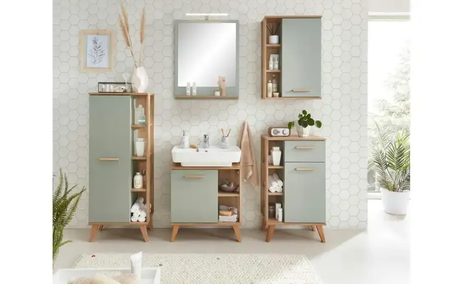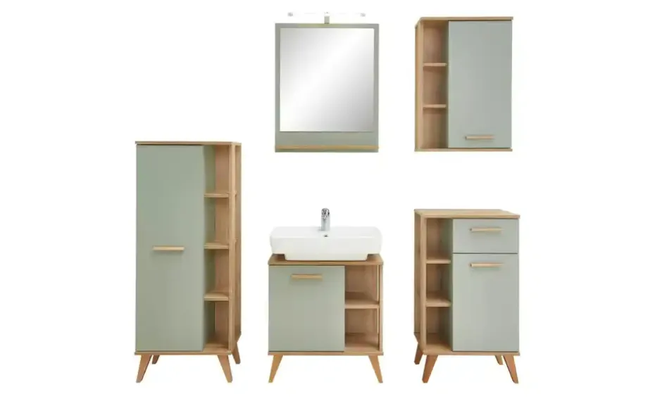 Waschbeckenunterschrank, Spiegel mit Aufsatzleuchte, Midischrank, Unterschrank, Hängeschrank