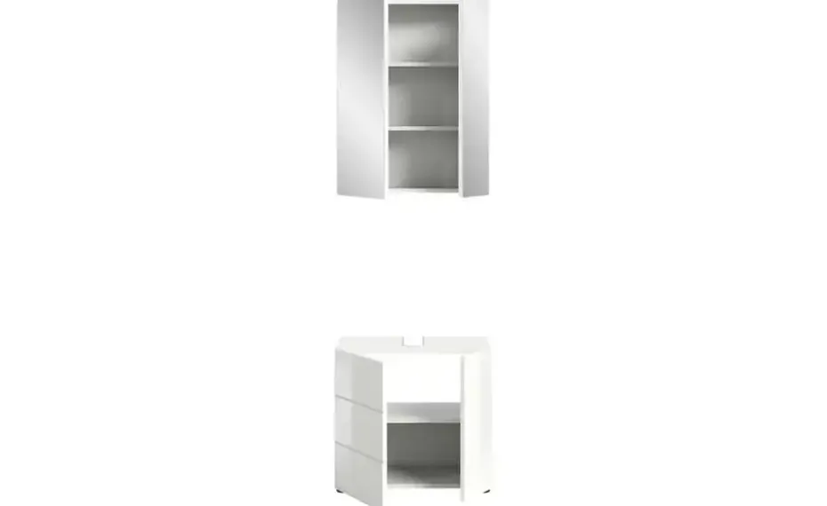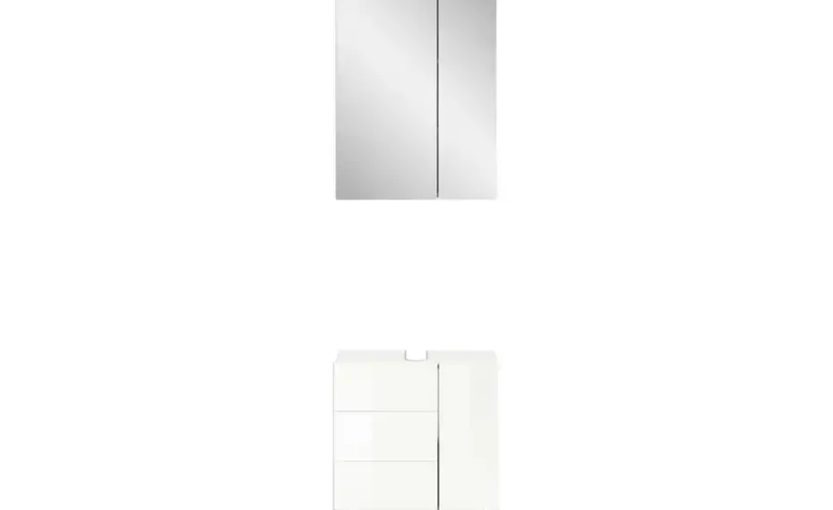 1x Waschbeckenunterschrank (B/H/T ca. in cm: 60/57/34 cm), 1x Spiegelschrank (B/H/T ca. in cm: 60/77/18 cm)