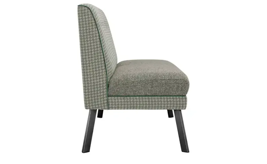 Sitzfläche in meliertem, grobem Webstoff / Rücken und Korpus in Webstoff mit Hahnentritt-Muster