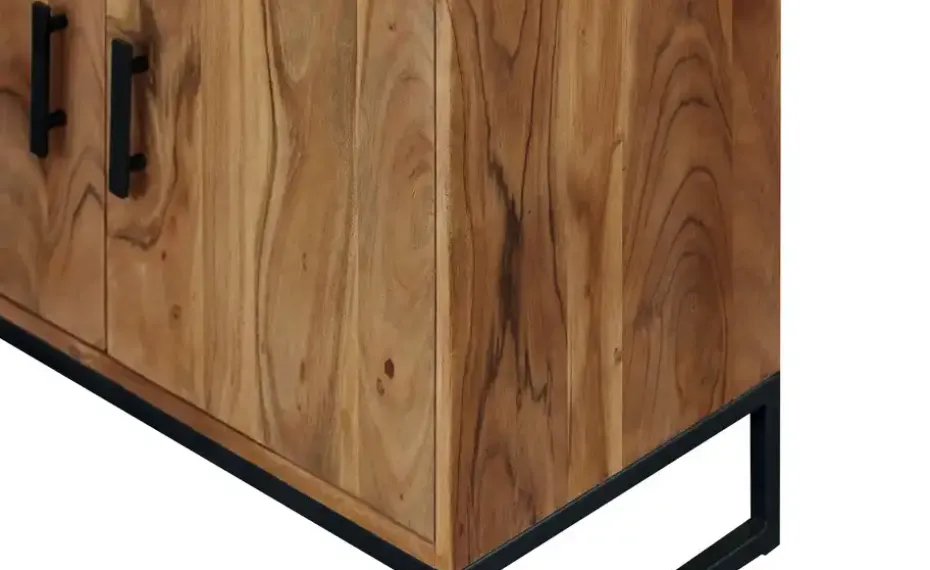 Für Bücher, Ordner und viele andere Dinge eignet sich das Bücherregal Candela. Es hat drei große Regalfächer – sowie ein weiteres Fach mit Türen davor. Das Regal ist aus massiver Akazie gefertigt und anschließend lackiert worden. Durch den Lack kommt die holztypische Maserung noch besser zur Geltung. Sie ist sehr auffällig und macht den Charme des Holzes aus. Als Kontrast dienen Gestell und Griffe aus schwarzem Metall. Candela vereint somit praktischen Nutzen und ein attraktives Äußeres.