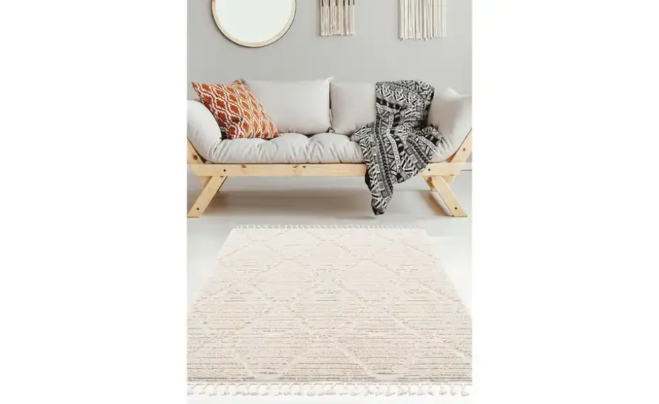 Entdecken Sie jetzt die zweite Influencerkollektion, die mit Cita Maass exklusiv für Höffner designt wurde. Die Kollektion greift Elemente des Boho-Stils auf und verströmt einen ganz besonderen Charme. Unterteilen Sie Ihren Wohnbereich auch optisch: Mit diesem trendigen Teppich. Der kuschelweiche Teppich ist mit einem rautenförmigen Reliefmuster versehen, welches für eine leichte Retro-Note sorgt. Liebevolle Details wie die verspielten Paspeln betonen den natürlichen Flair des cremefarbenen Teppichs. Ob Ton-in-Ton mit zum Beispiel dem Boho-Stil, oder als Kontraststück zu dunklen Böden: Der Teppich ist mit zahlreichen Farbkonzepten kombinierbar.
