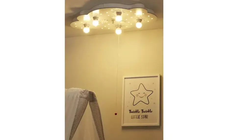 Die Deckenleuchte im Wolken-Design verbreitet ein angenehmes Flair im Raum und begleitet die Kleinen dank LED-Beleuchtung mit Schlummerlicht ins Land der Träume.
