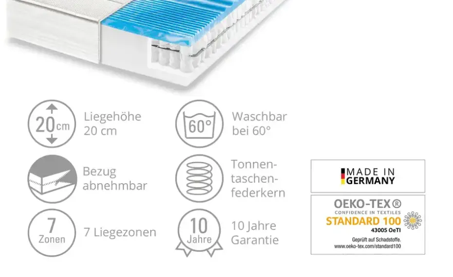 Herstellergarantie auf Matratzenkern 10 Jahre