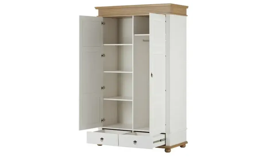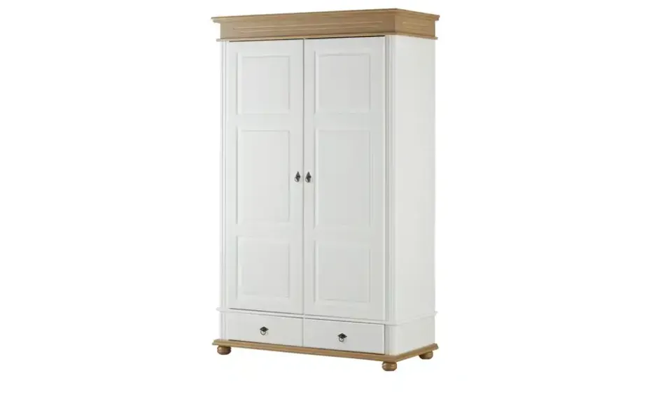 Drehtürenschrank Massivholz Fehmarn | Weiß, Eiche, 2 Stück