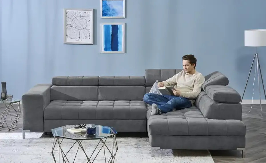 Dieses Ecksofa ist genau das Richtige für komfortable Momente in Ihrem Zuhause. Das Modell Arte ist aufgrund der Kopfteilverstellung extrem gemütlich, lädt auch dank des Federkerns sowie der Polsterung aus Schaumstoff zum Wohlfühlen ein und ist mit einem echt bezogenen Rücken ausgestattet, sodass es ohne Probleme mittig im Raum aufgestellt werden kann. Es besticht mit seinem Gestell aus Metall. Die Couch dient durch den integrierten Bettkasten als Stauraummöbel, nimmt 284 x 97 x 200 cm ein und wird durch die besonders große Sitztiefe von 62 cm zu einer regelrechten Entspannungsinsel. Lehnen Sie sich gemütlich zurück und genießen Sie Ihren Feierabend auf diesem Sofa.