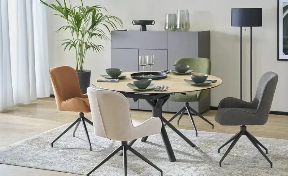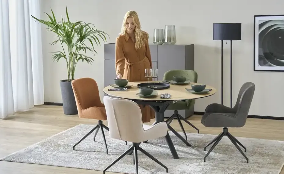 Durch Auszug entsteht ein runder Esstisch