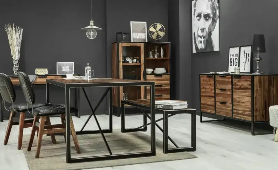An diesem Tisch nimmt man gerne Platz: Der Esstisch Brooklyn von Love it ist im angesagten Industrial-Look designt. Die Tischplatte in 180 x 90 cm ist mit Akazienholz furniert. Für einen auffälligen Eyecatcher-Effekt ist das Holz gebeizt worden. Gestell und Tischplattenumrandung bestehen aus pulverbeschichtetem Metall. Seine graue Farbe ist mit gewollten Abnutzungen versehen. Die Kufen sorgen für einen soliden Stand, sind aber zusätzlich durch Querstreben verbunden. Das verbessert die Stabilität und setzt zusätzliche Akzente.