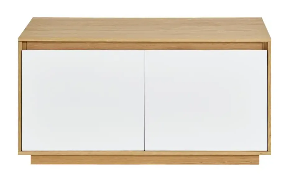 Die Garderobenbank Tiba ist gleich doppelt praktisch: Sie ist Stauraum und Sitzgelegenheit in einem. Innen verfügt Tiba über zwei Fächer. Der Einlegeboden dazwischen lässt sich in der Höhe variieren. Nutzen Sie den Stauraum zum Beispiel für Schuhe. Durch die Türen sind sie vor Staub geschützt. Tiba sieht auch ansprechend aus. Der furnierte Korpus in Eiche Bianco wird von einer weißen Front abgesetzt.