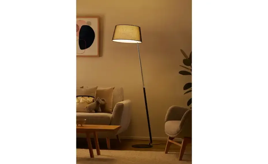 HELL-höllisch gutes Licht Stehleuchte, 1-flammig, schwarz/chrom mit grauen Schirm