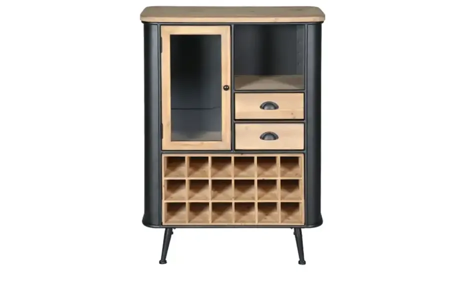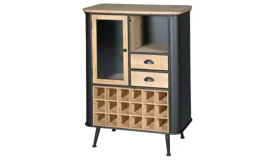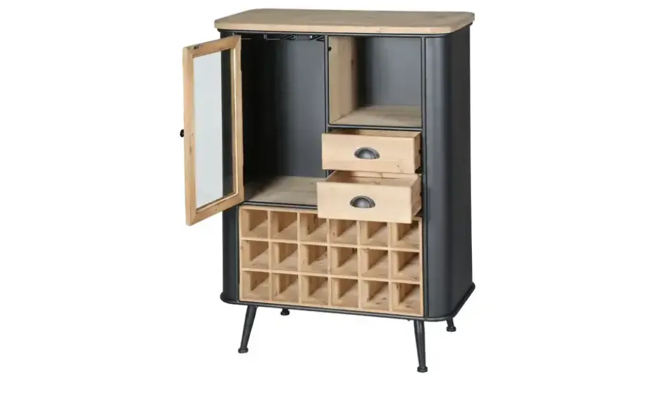 Mit Flaschen- und Glashalter, 2 Schüben und Glastür