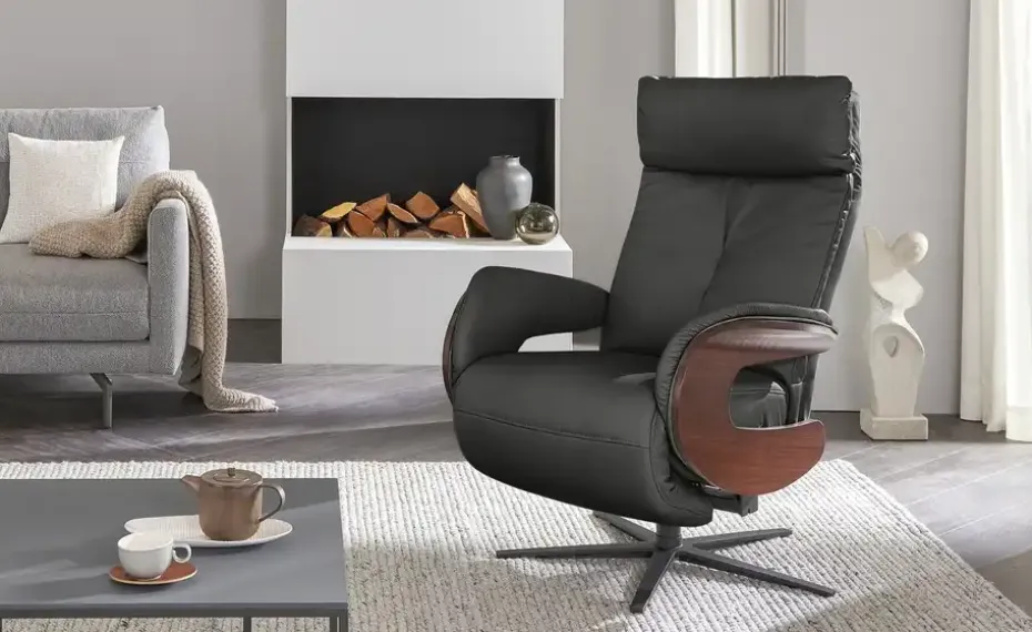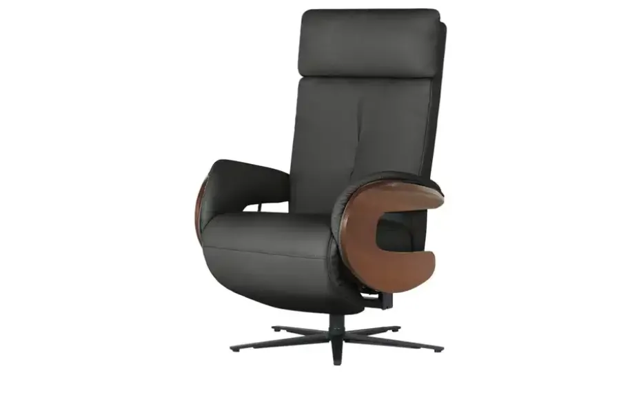 Beste Komforteigenschaften in Kombination mit modernem Design: Das finden Sie beim Sessel 7818 der Marke himolla. Hochwertiges Echtleder umspannt die dick gepolsterten Sitzflächen und den innenliegenden Teil der Armlehnen. Letztere sind luftig designt und an der Außenseite mit schön gemasertem, nussbaumfarbenem Buchenholz versehen. Der komfortable Relaxsessel wird von einem sternförmigen, dunklen Metallfuß getragen und ist dadurch drehbar. Lehnen Sie sich zurück und lassen Sie den Tag in Ruhe ausklingen. Dank der intuitiv bedienbaren Relaxfunktion lässt sich der Sessel auf Knopfdruck in die Herz-Waage-Position stellen. Auch das Fußteil und die Rückenlehne sind verstellbar. Mit der integrierten Aufstehhilfe kommen Sie auch mühelos wieder auf die Beine. Polster gefertigt im bayrischen Taufkirchen: Von Menschen für Menschen. Die hochwertigen Funktionsmöbel der Marke himolla besitzen durchdachte Verstellfunktionen und begleiten Sie ein ganzes Möbelleben lang.