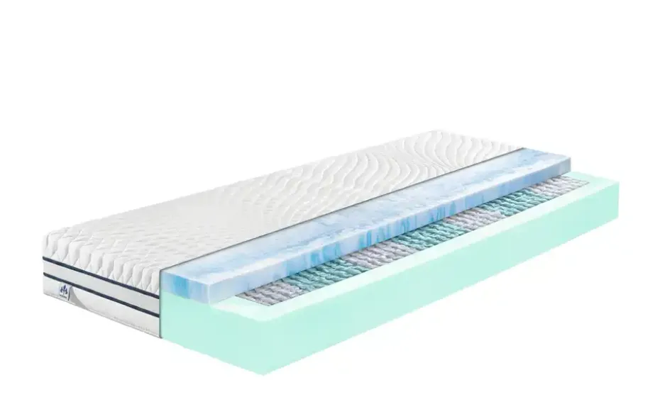 Kern: 1.000er 7 Zonen Tonnentaschenfederkern (688 Federn bei 90 x 200 cm), ca. 6 cm hohe Gelactive Auflage mit Rhombotherm Stanzung, Unterplatte und Seitenteile aus neuester Hybridschaum-Technologie – RG 49