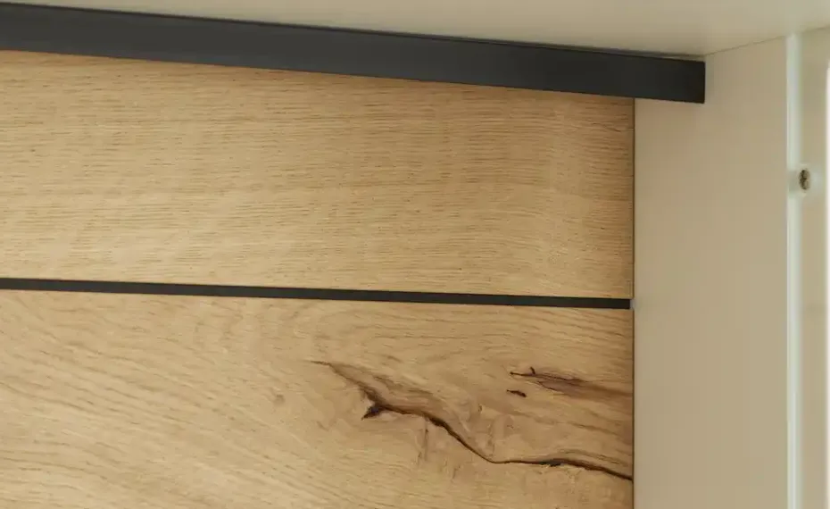 Rückwand-Akzent Balkeneiche Massivholzbalken, stark gebürstet