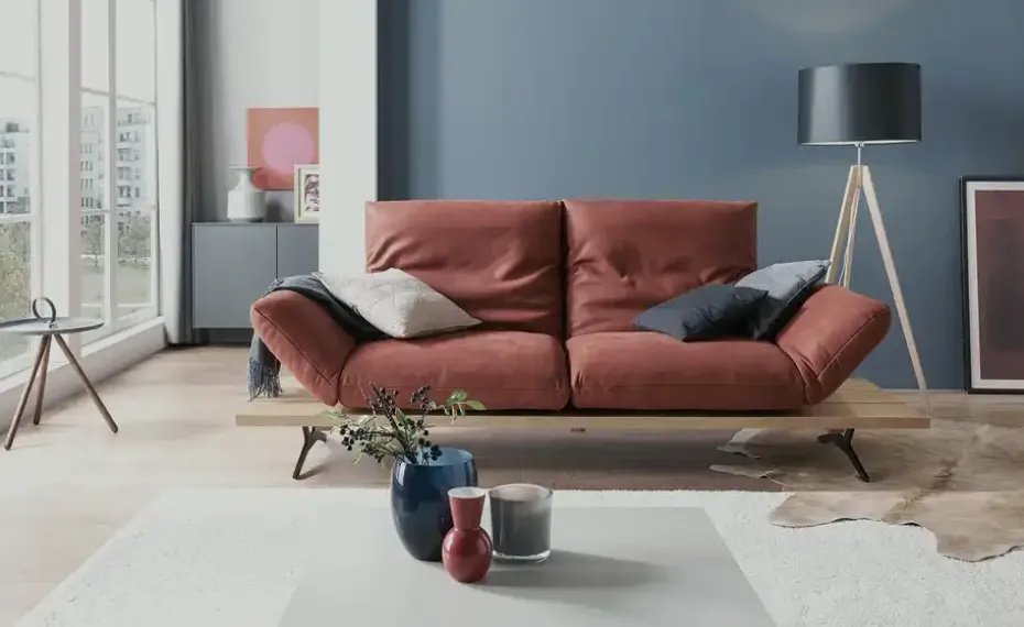 Eine faszinierende Art von Schwerelosigkeit erzeugt das Ledersofa Marilyn durch sein natürliches Holzplateau. Schmale Schwertkufen aus pulverbeschichtetem Metall tragen das massive Wildeichenholz, auf dem die multifunktionalen Polster aufliegen. Der Bezug besteht aus hochwertigem Echtleder und ist in diversen Farben erhältlich. Verstellen Sie die Kopfteile und Armlehnen ganz nach Ihren Wünschen. Die ausgeklügelte Dreh- und Schiebefunktion ermöglicht individuelle Sitzpositionen. Die einzelnen Sitzflächen können Sie ganz einfach auseinander ziehen, wodurch drei separate Sitzgelegenheiten entstehen. Wie für Möbel der Marke KOINOR üblich, sind sämtliche Hebel und Griffe direkt im Sofa integriert, damit die Optik nicht gestört wird. Unikate gefertigt in Bayern: Die Marke KOINOR steht für einzigartige Komfortfunktionen und individuelles Design. Unter Verwendung hochwertigster Materialien entstehen Möbel mit Vorzeigecharakter.