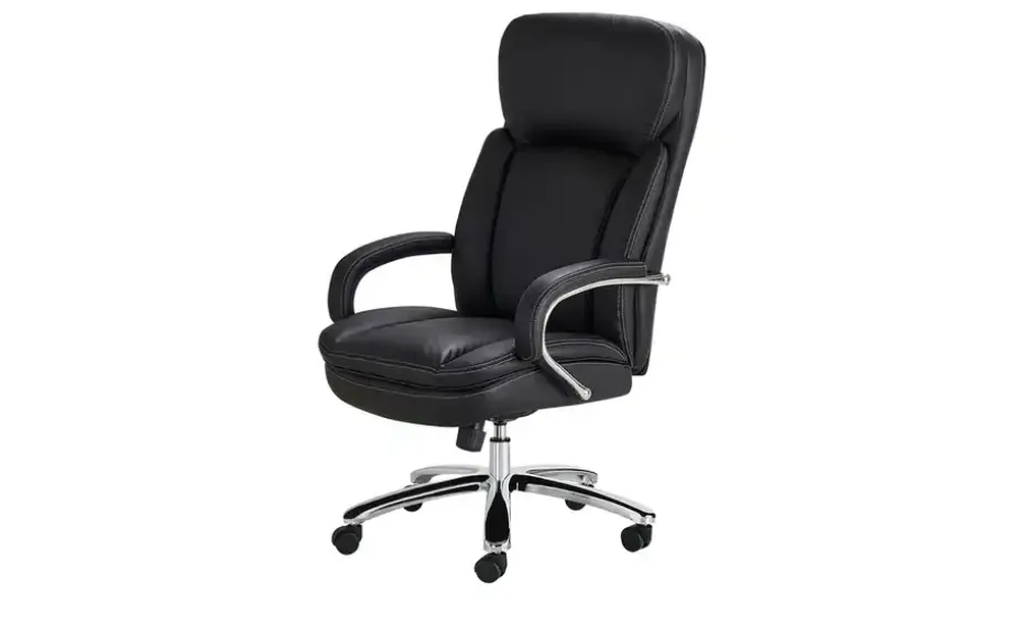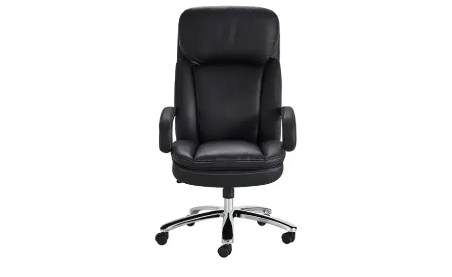 Der Name verrät es: Der Komfort-Chefsessel Bode XXL ist auch für richtig große Personen geeignet. Er kann mit maximal 180 Kilogramm belastet werden. Der Rücken ist extra hoch und mit einem Kopfpolster ausgestattet. Sitz und Rücken sind dick und weich gepolstert, damit Sie es bequem haben. Die beiden Soft-Pad-Armlehnen sind ebenfalls gepolstert und haben eine angenehme Höhe. Sie können die Sitzhöhe von 55 bis 62 Zentimeter Höhe variieren. Der Chefsessel lässt sich drehen und ist mit einer Wippmechanik und Teppichbodenrollen ausgestattet. Die gesamte Vorderseite des Sitzes ist mit feinstem Echtleder bezogen. Für die Rückseite ist strapazierfähiges Kunstleder verwendet worden.
