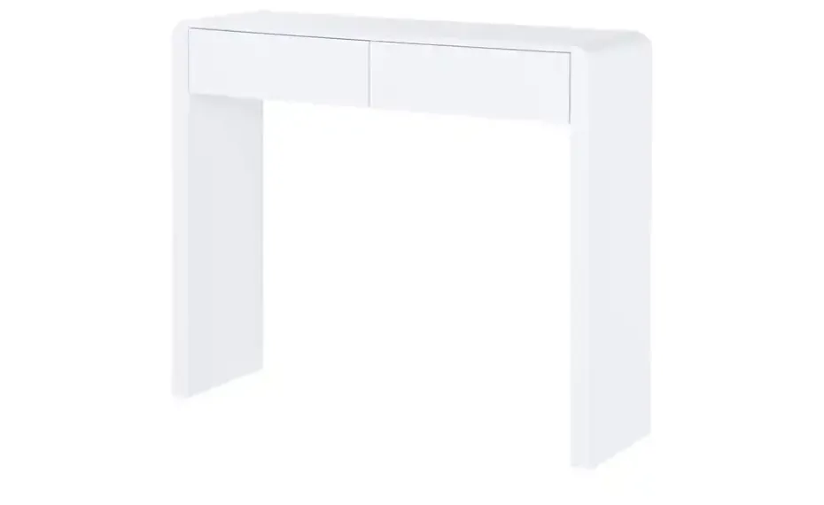 Der ansprechende Konsolentisch ist mit zwei praktischen Schüben ausgestattet und in weißer Hochglanzlackierung ausgeführt. Die Push-to-open-Funktion bietet Zugang zu den Schubkästen, ohne das ein Griff vermisst wird.