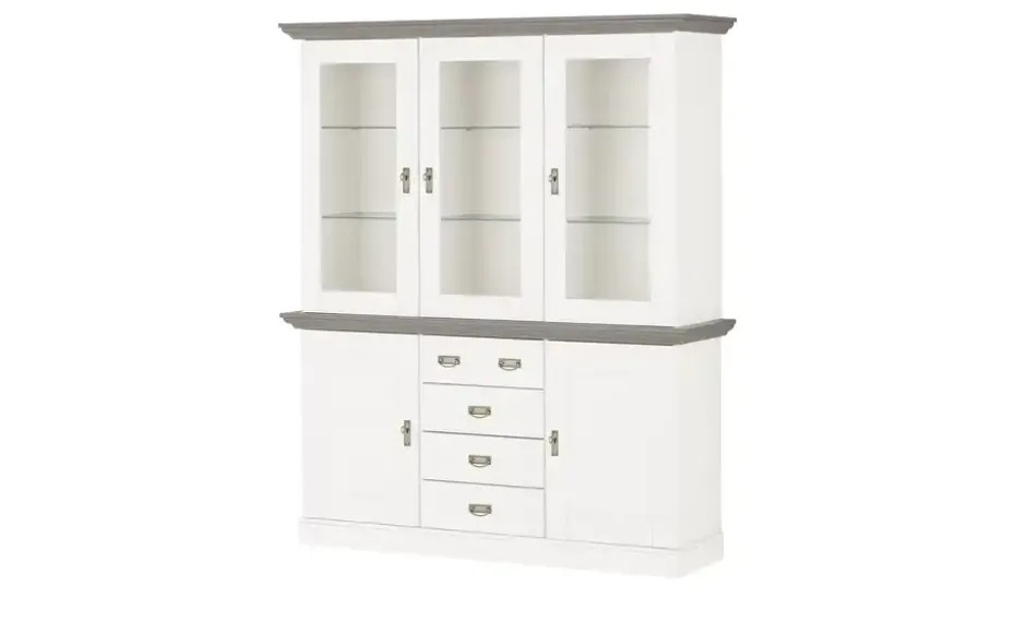 Sideboard Florian (4 Schubkästen, 2 Holztüren) und Vitrinenaufsatz Florian (3 Glastüren)