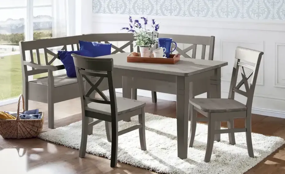 maison bleue Truheneckbank massiv Florian | Grau, ca, 214 x 148 cm