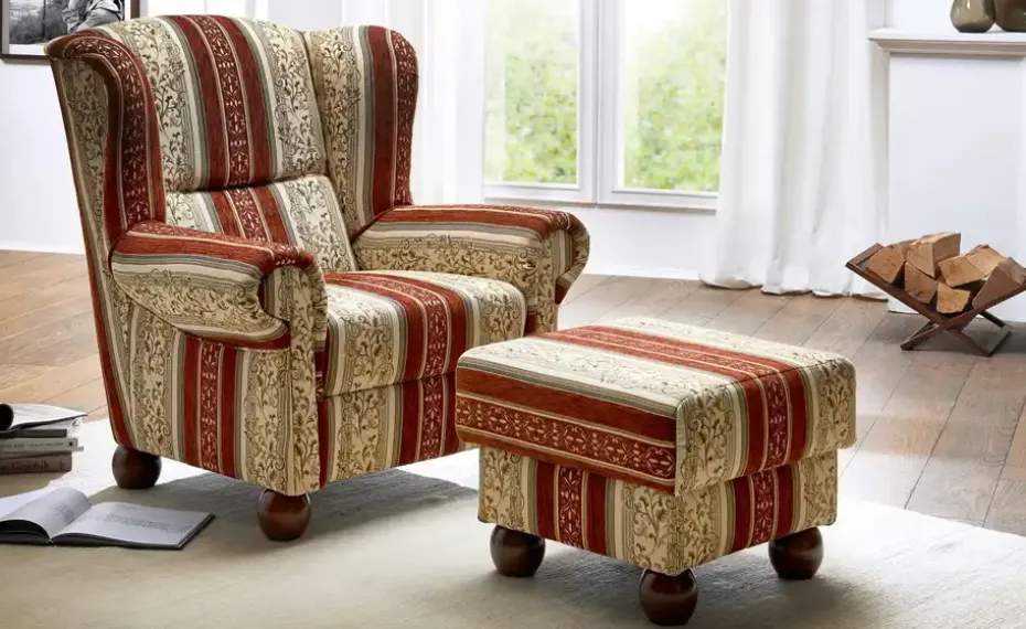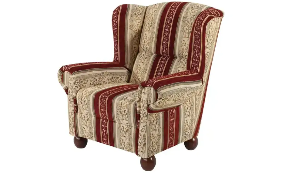 Dieser Ohrensessel verströmt ein elegantes Retro-Flair. Durch sein auffälliges Muster wird er in jedem Raum leicht zum Blickfang.