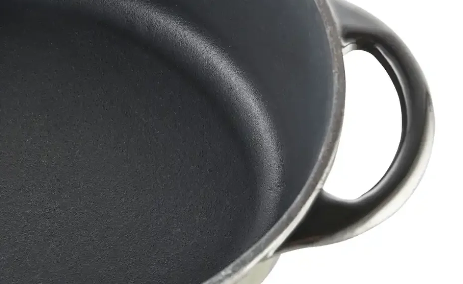 Die Emaille sorgt dafür, dass er leicht zu reinigen ist und nichts anbrät