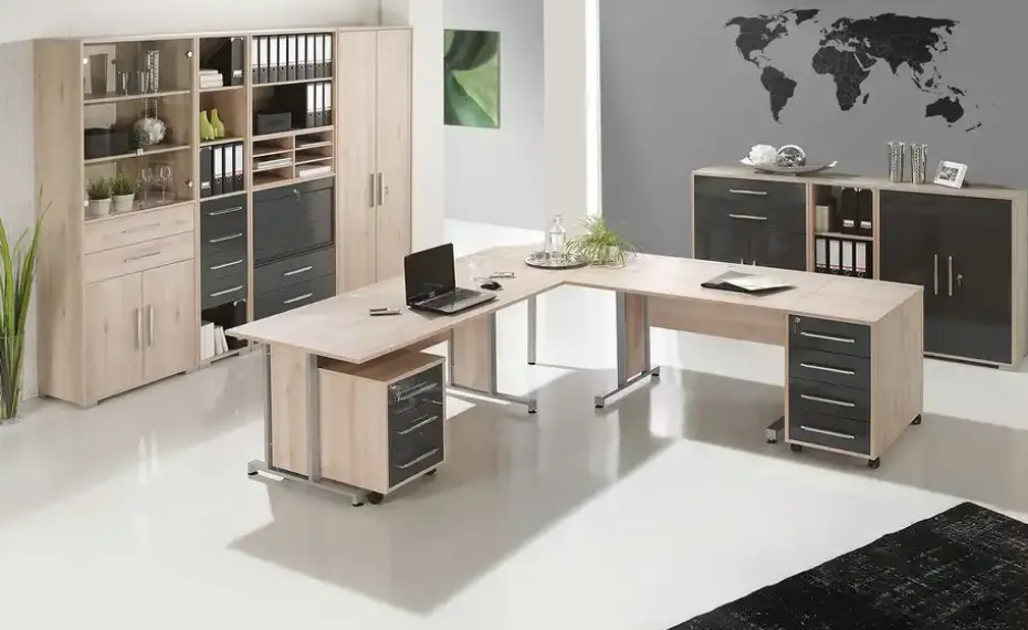 Success sorgt mit der Verbindung von zeitlosem Design und durchdachter Funktionalität für ein harmonisches Zusammenspiel in jedem Büro. Dank der innovativen ABS-Kanten, die besonders strapazierfähig und abriebfest sind, überzeugt Success mit langlebigen Oberflächen. Die Metallfüße sind passend für die Schreibtischplatten aus dieser stilvollen Serie.