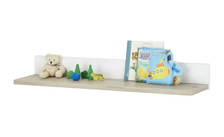 Das Wandregal Carlo von PAIDI bietet zusätzliche Stellfläche im Baby- und Kinderzimmer. Auf dem langen Boden finden Spielzeug und Kinderbücher Platz. Oder Sie platzieren Carlo oberhalb der Wickelkommode. Dann bietet das Wandregal Stellfläche für Babypflegeprodukte. Paneel und Boden sind foliert und beschichtet. Das Kreideweiß wird vom Dekor in Fichte-Vintage (Nachbildung) abgesetzt.