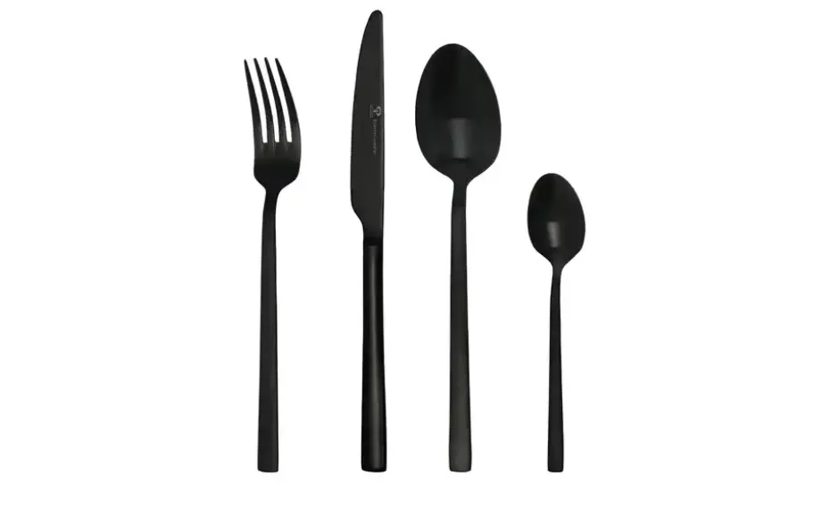 Das 16-teilige Besteck-Set Argento präsentiert sich in edlem, mattem Schwarz. Setzen Sie bewusste Kontraste oder kombinieren Sie das Besteck mit gleichfarbigem Geschirr. Das sanft geschwungene Design-Besteck der Marke Peill+Putzler besteht aus hochwertigem Edelstahl und ist selbstverständlich spülmaschinenfest.
