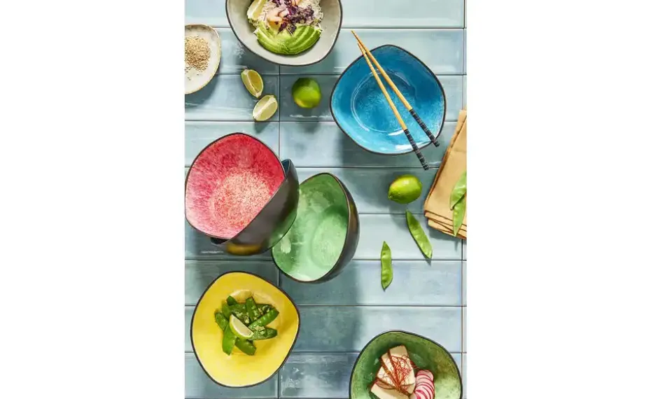 Aus diesen außergewöhnlichen Bowls schmecken Pokés oder dein Müsli doppelt gut. Die unregelmäßige Form, die knalligen Farben gepaart mit mattem Schwarz – alles an diesen Bowls ist wunderbar.