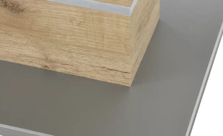 Tischplatte und Säule aus Holzwerkstoff foliert in Struktureiche Terra (Nachbildung)