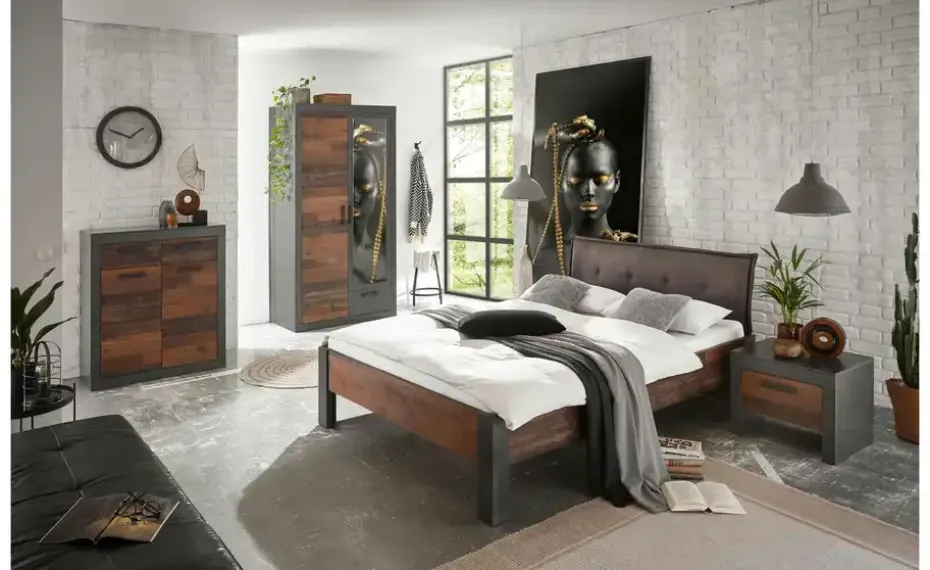 Nachtschrank, Kommode, Kleiderschrank, Bettgestell mit Kopfteil