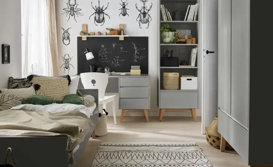 Zeitloses Design und attraktive Massivholzfüße für eine Scandi-Note machen diesen Schreibtisch zu einem kombinationsfreudigen Möbelstück. Nutzen Sie die drei Schubfächer für Hefter, Kabel und Zubehör. Auf der 125 x 75 Zentimeter großen Tischplatte finden Schreibtischlampe, Laptop und Co. problemlos Platz. Sie benötigen mehr Stauraummöglichkeiten? Dann ergänzen Sie den Schreibtisch doch mit der gleichnamigen Kommode oder dem Wandboard der Serie.