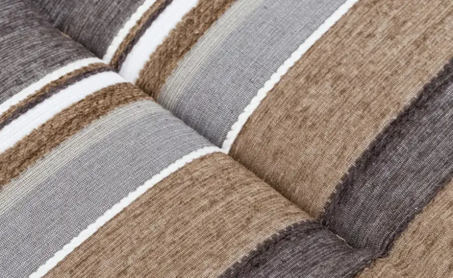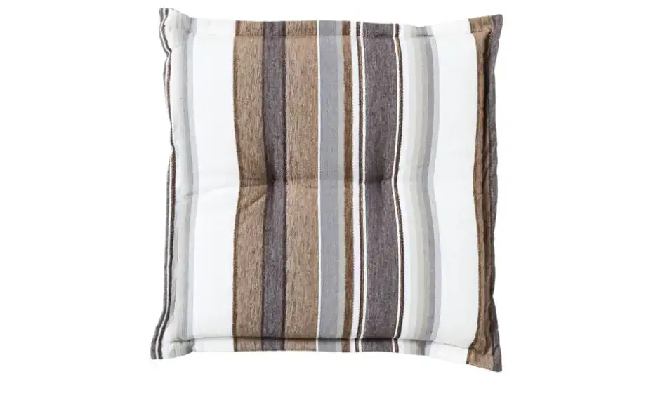 Die Auflagenserie besticht durch ihre schöne Optik. Das Äußere der Auflage bestimmen weiße Streifen, die in hell- und dunkelbraune Töne übergehen. Hin und wieder werden sie durch dünne schwarze und graue Linien unterbrochen.