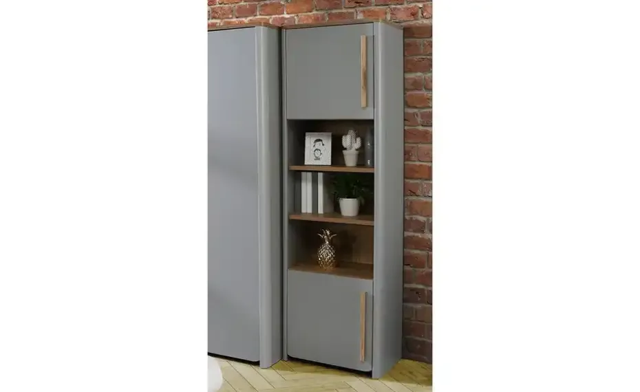 Diese Serie verbindet modernes Grau mit natürlichen Akzenten aus Catania-Eichennachbildung. Das Ergebnis sind attraktive Möbel, die in zahlreichen Raumkonzepten Platz finden. Bei diesem Standregal ist der Stauraum praktisch unterteilt. Bringen Sie Bücher, Bilderrahmen und Dekoration in den drei offenen Regalfächern unter und verstauen Sie Kleinigkeiten und Mehr in den beiden blickdichten Fächern hinter den Türen. Dank seines Designs passt das Regal in Jugend-, Wohn- und Arbeitszimmer.