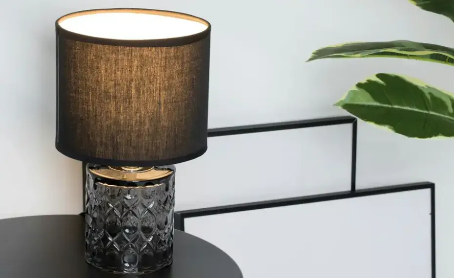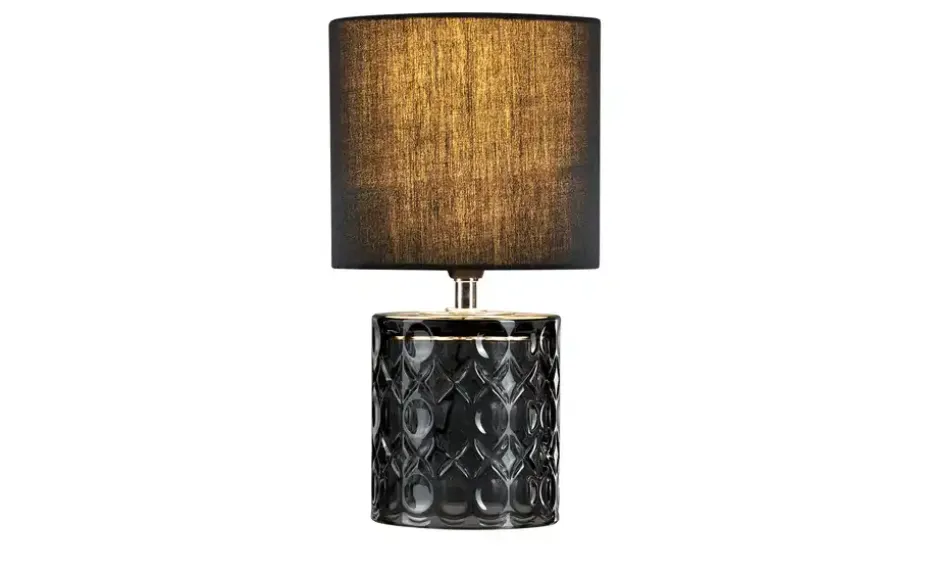 Tischleuchte, 1-flammig, Rauchglas und Stoff `klein`