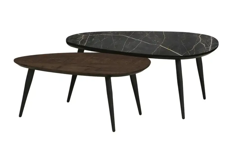 uno Couchtisch 2er Set XL Dortmund | Mango (Nachbildung), Dunkelbraun, Marmoroptik, Schwarz