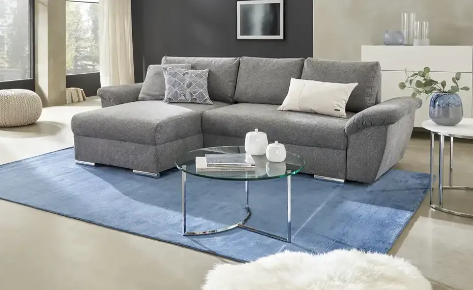 In jedem Zuhause erzeugt dieses Ecksofa ein ausgesprochen gemütliches Wohngefühl. Der Markenartikel von uno ist mit einem echt bezogenen Rücken ausgestattet, sodass er auch mitten im Raum aufgestellt werden kann. Er lädt aufgrund der bequemen Polsterung aus Schaumstoff zum Wohlfühlen ein. Das Modell Valencia begeistert mit einem Gestell aus Kunststoff. Das Sofa bringt eine beidseitig montierbare Ottomane mit, nimmt insgesamt 227 x 86 x 156 cm ein und lädt mit der stattlichen Sitztiefe von 76 cm zum Relaxen ein. Lehnen Sie sich gemütlich zurück und lassen Sie sich von dieser Couch umschmeicheln.