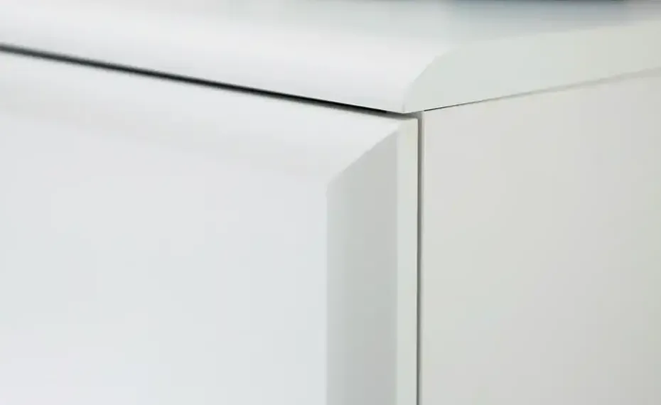 Front und Oberboden aus Holzwerkstoff tiefgezogen in Weiß matt melaminbeschichtet
