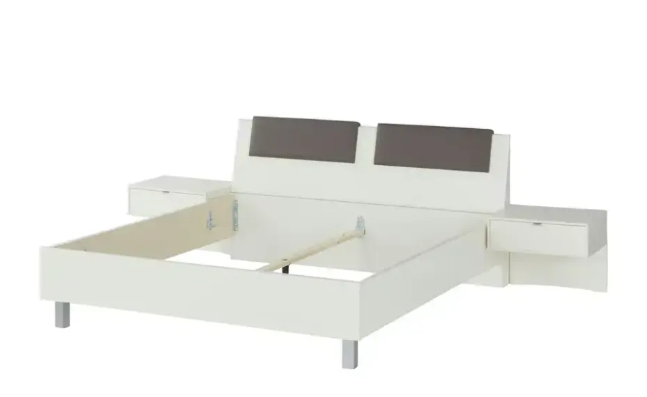 Bettanlage mit zwei Nachtkommoden, schwebend mit je einen Schub
