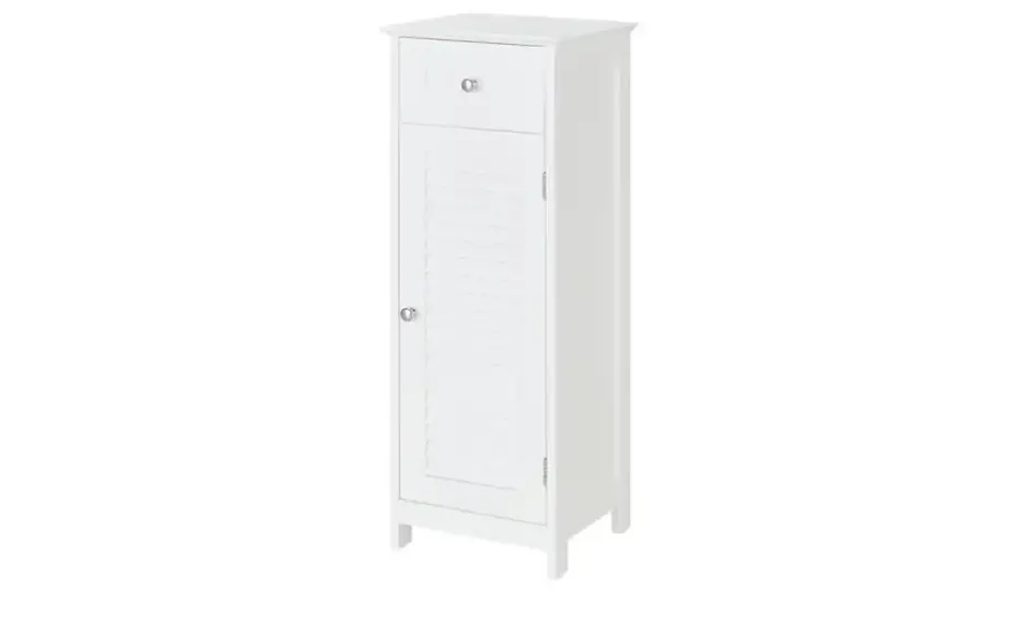 Zaubern Sie eine maritime Landhausnote in Ihrem Bad – mit dem Bad-Unterschrank Königsee. Er ist komplett weiß lackiert. Und hat ein mattes Oberflächenfinish. Die Tür hat eine auffällige Lamellenoptik. Der Schrank bietet vielseitigen Stauraum. Ganz oben befindet sich eine Schublade. Darunter hat der Schrank zwei geräumige Fächer hinter einer Tür. Den Einlegeboden können Sie in der Höhe verstellen.