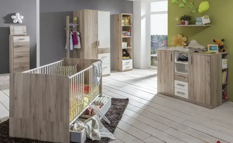 Ergänzen Sie die Wickelkommode Caja mit diesem gleichnamigen Unterstellregal. Das Regal hat drei Fächer. In ihnen können Sie Pflegeprodukte oder Windeln platzieren. Durch die offene Gestaltung haben Sie alles schnell bei der Hand, wenn Sie Ihr Baby wickeln. Caja greift die Holzoptik der Wickelkommode auf – und passt so auch optisch.