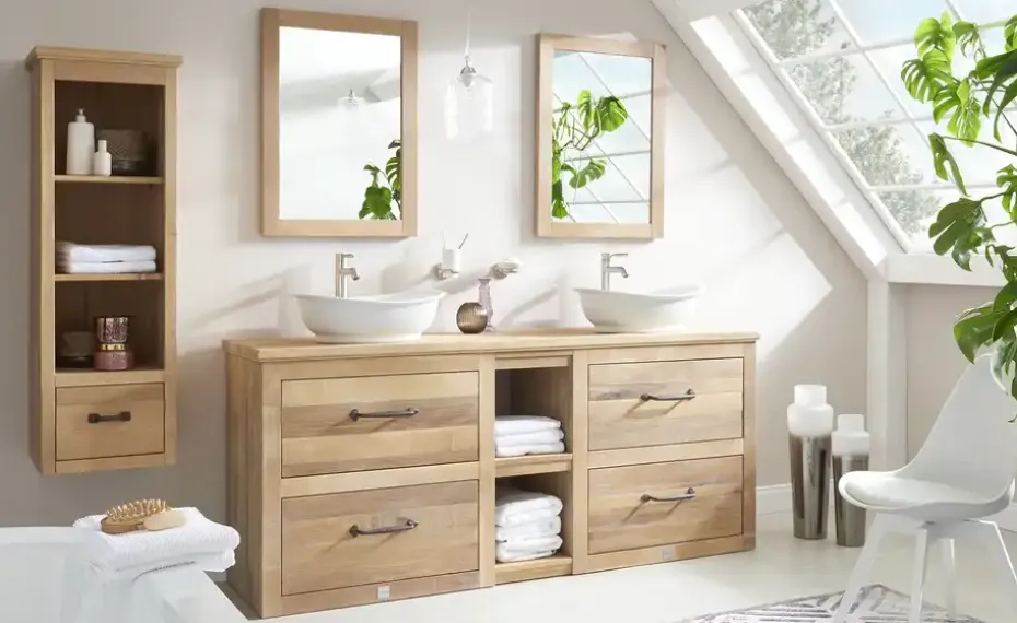 Ein Spiegel gehört in jedes Badezimmer. Wir empfehlen den Spiegel La Provence von VAN HECK, der zur gleichnamigen Badezimmerserie gehört. Er ist wandhängend und wird oberhalb des Waschbeckens platziert. Die Spiegelaufhängung ist senkrecht. Die Kristallspiegelfläche ist groß genug, damit Sie sich bis Brusthöhe in den Spiegel sehen können. Für den Rahmen ist massive Eiche verwendet worden. Sie hat eine hervorragende, langlebige Qualität.