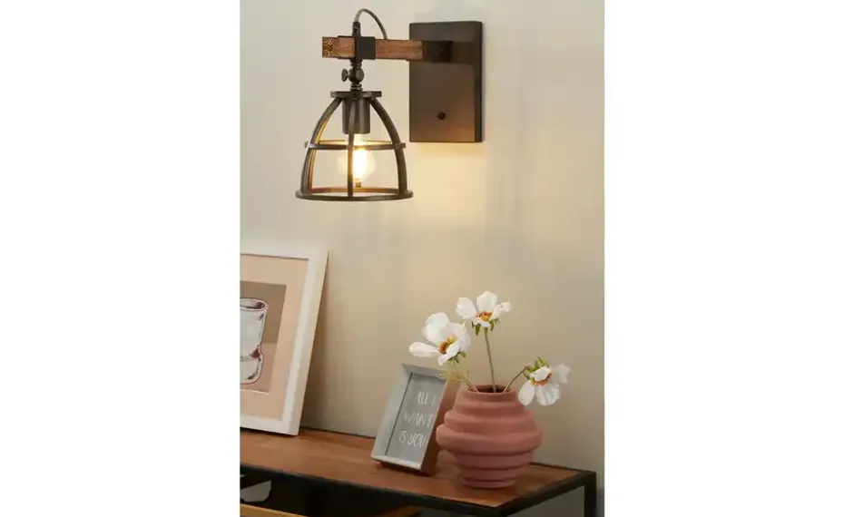 Wandleuchte, 1-flammig, schwarz/holz | Möbel Höffner