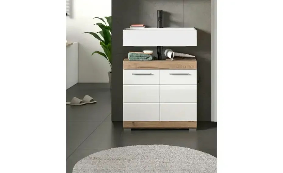 Waschbeckenunterschrank WALDSEE, Breite 60cm, 2 Tür, 2 Fächer, mit Siphonausschnitt, MDF-Front, in verschiedenen Farben erhältlich, Badmöbel, Badschrank, Kommode, Bad Waldsee