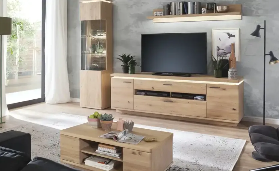 Korpus aus Holzwerkstoff furniert in Eiche Bianco geölt / innen Eiche Bianco (Nachbildung)